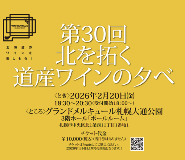 【2月6日】毎年恒例の道産ワインの夕べが2月20日に開かれます。チケットはこちらにて!